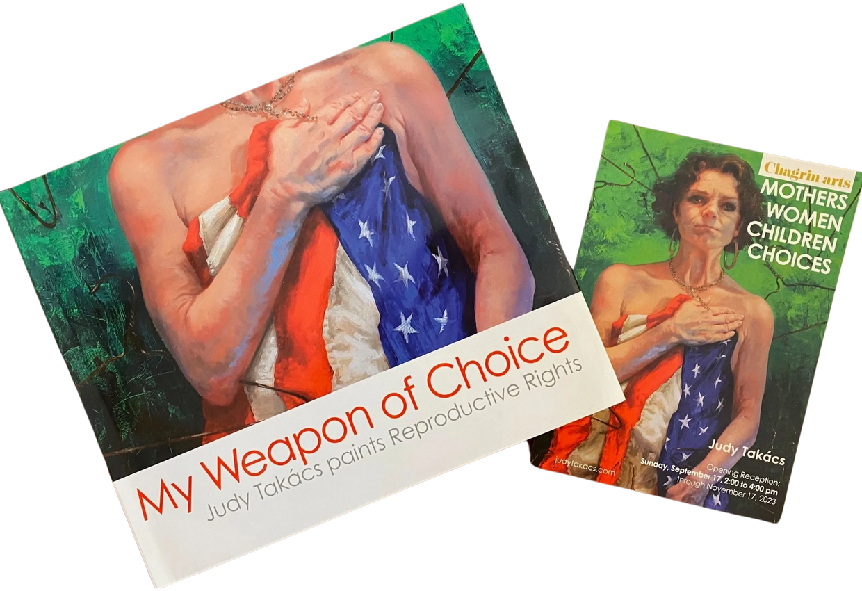 with Takács’ Goddess and Pro-Choice paintings, and includes her Op Ed articles and letters to the editor;
